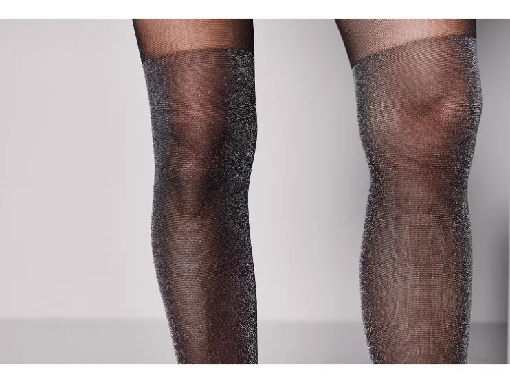 | Materiaal: | zwart/stippen: Zwart: 90 % polyamide, 10 % elastaan (LYCRA®); Overknee: 91 % polyamide, 8 % elastaan (LYCRA®), 1 % gemetalliseerde vezels zwart/zilver: Zwart: 90 % polyamide, 10 % elastaan (LYCRA®); Overknee: 85 % polyamide, 9 % elastaan (LYCRA®), 6 % gemetalliseerde vezels zwart/strepen: Zwart: 90 % polyamide, 10 % elastaan (LYCRA®); Overknee: 89 % polyamide, 8 % elastaan (LYCRA®), 3 % gemetalliseerde vezels |