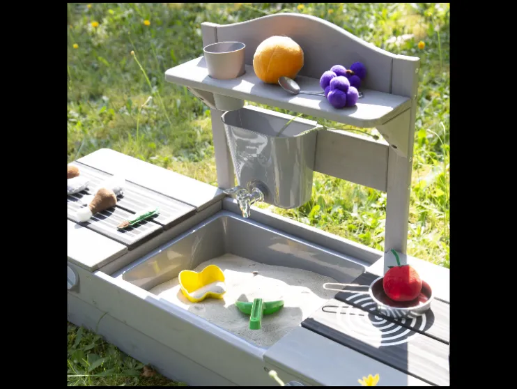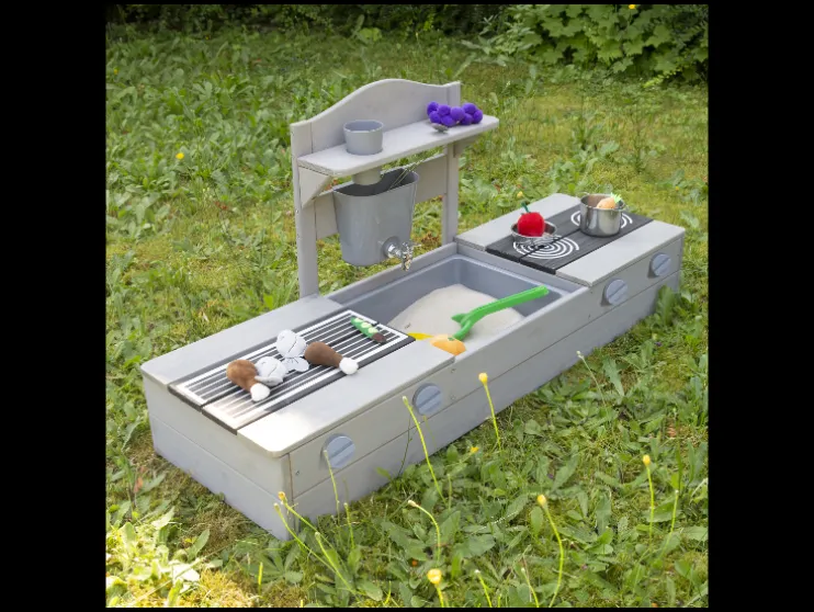 2-in-1 balkon zandbak met speelgoed keuken