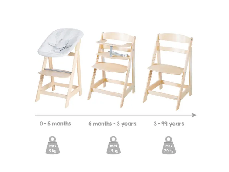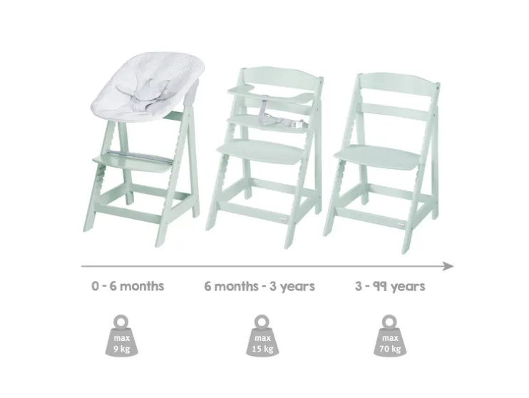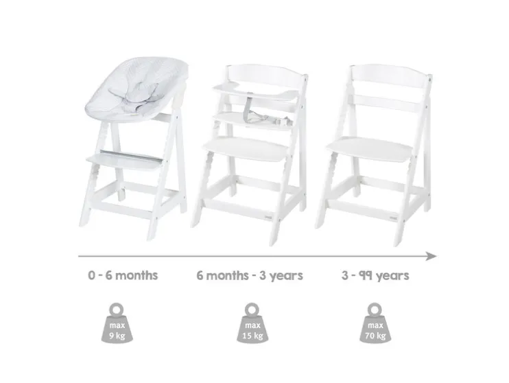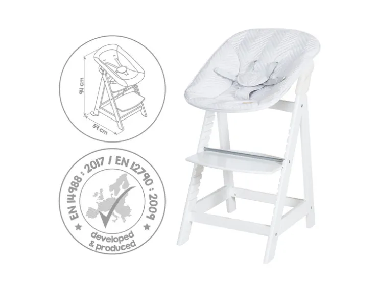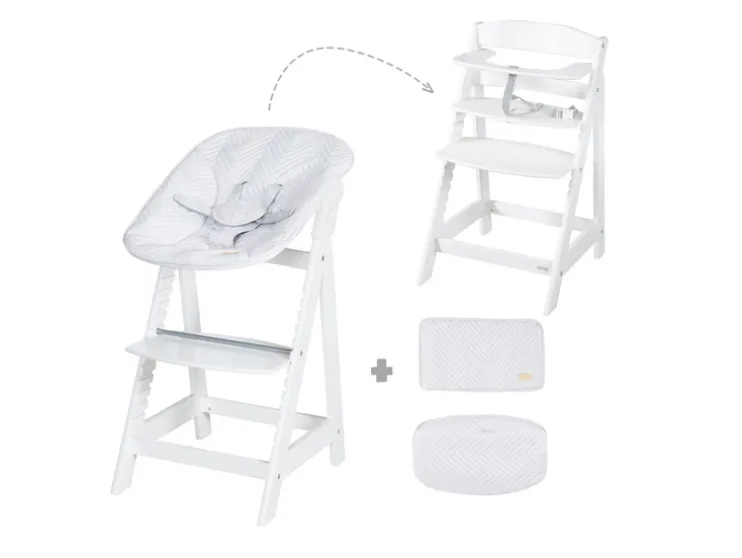 Laat je kindje vanaf dag één veilig en comfortabel mee-eten. De roba Born Up Zickzack groeit met je kind mee en biedt slimme functies voor elke fase.