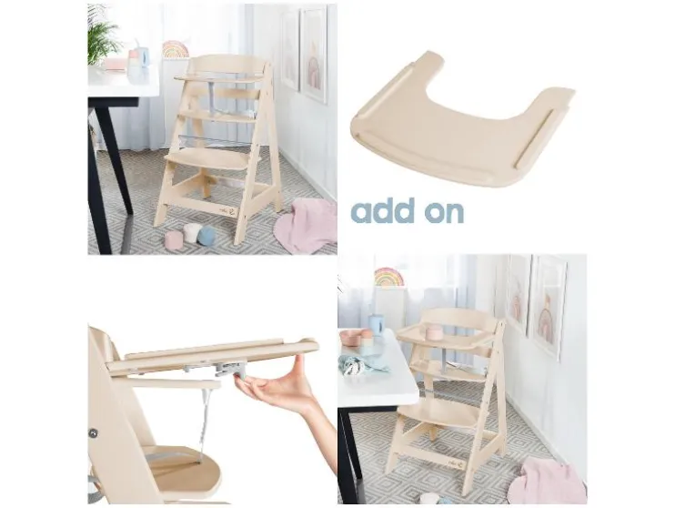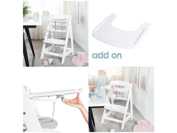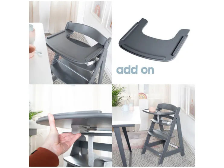 - Opzetstuk eenvoudig afneembaar zodat de stoel een klassieke trapkinderstoel wordt