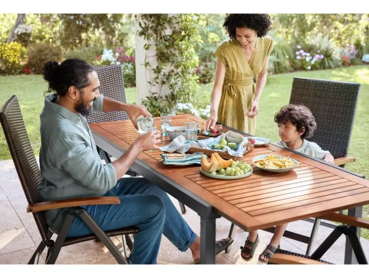 | Materiaal: | Frame: Aluminium, Bespanning: Kunststof, Armleuningen: Echt hout (Eucalyptus) |