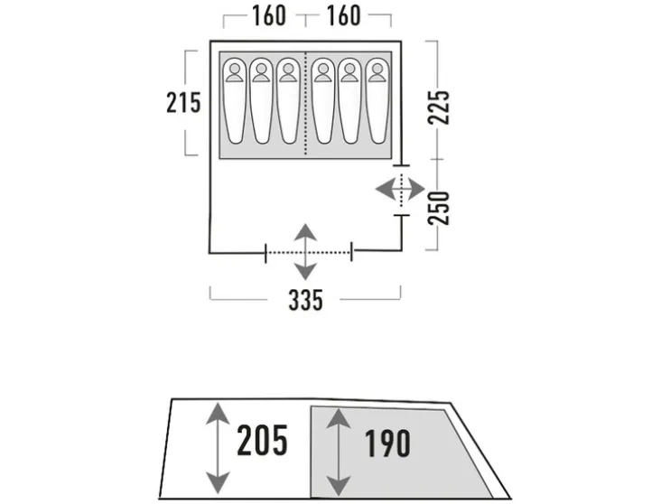 De binnentent heeft twee ingangen met Vario Vent Control en muskietennetten. Een verwijderbare scheidingswand maakt van het slaapgedeelte één grote of twee aparte cabines. Binnenin vind je opbergvakken, organizers en lamphouders. De tent wordt geleverd met een ruime, oprolbare Oxford draagtas voor eenvoudig inpakken.