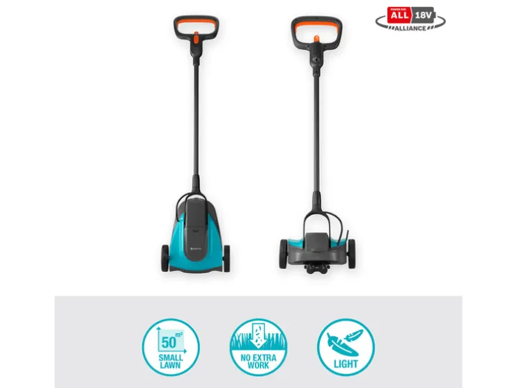 - Ideaal voor kleine tuinen – met een accu-looptijd van max. 25 minuten en voor een oppervlakte tot 50 m²