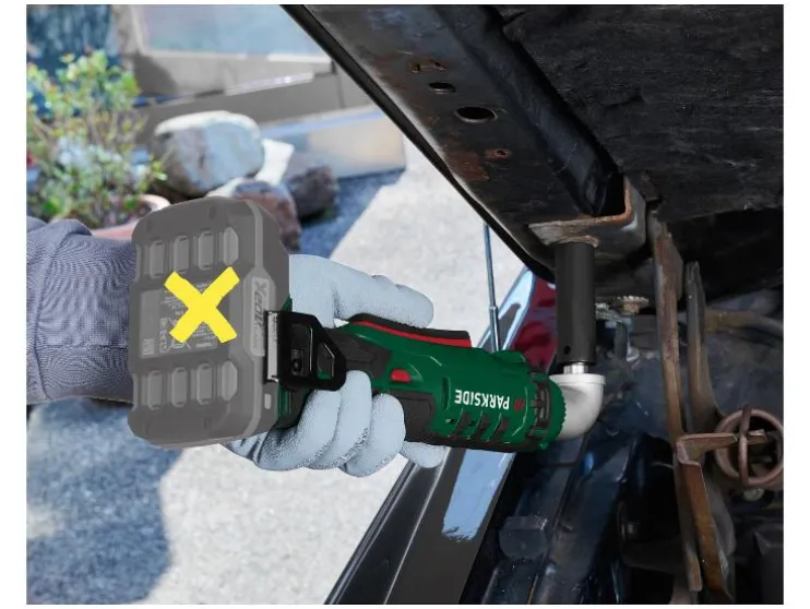 - Apparaat compatibel met alle accu’s van de serie PARKSIDE X 20 V Team