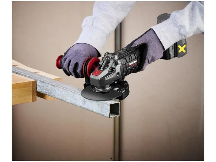 | Accessoires: | 1x metalen doorslijpschijf (voorgemonteerd), 1x extra handgreep (voorgemonteerd), 1x spansleutel (opgeborgen in de extra handgreep), 1x 2-in-1 beschermkap (voorgemonteerd) |