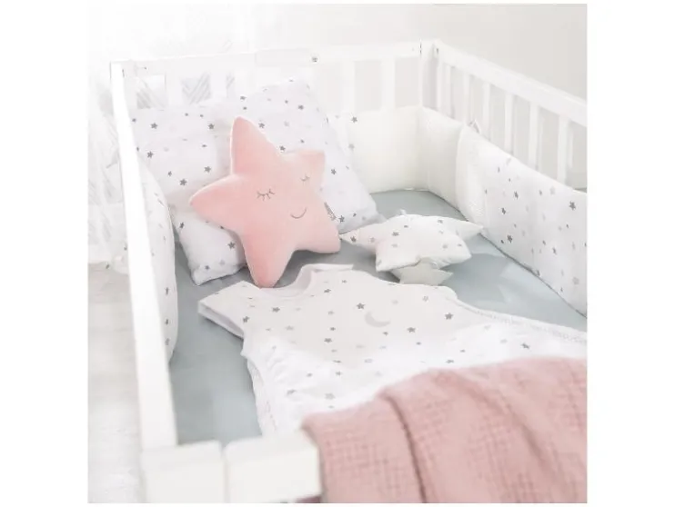 - Bekleedt de spijlen in het hoofdgedeelte van het bedje en beschermt kleine ledematen