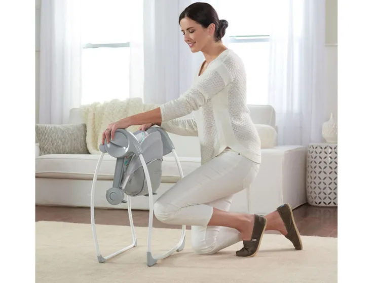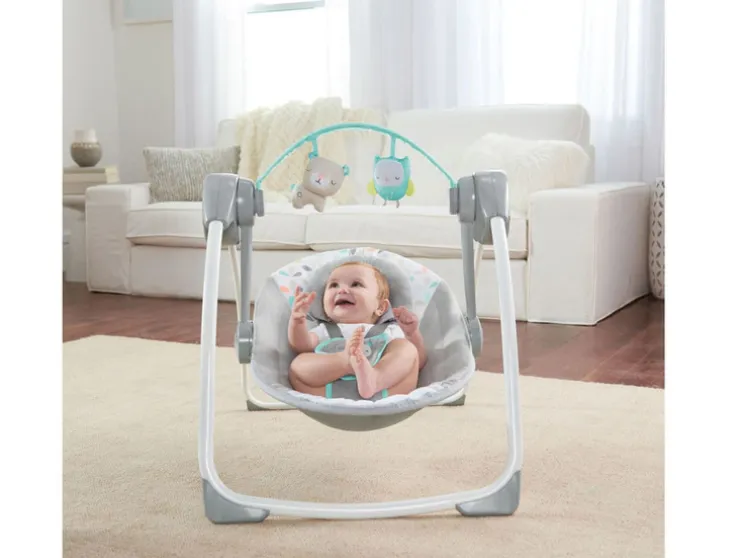 Schommel met maximaal comfort – altijd en overal met de Comfort 2 Go Portable Swing™ van Ingenuity™ in Fanciful Forest-design. Deze compacte draagbare babyschommel neemt weinig ruimte in beslag in je huis. Toch heeft Ingenuity™ niet bespaard op de belangrijke functies die ook op babyschommels in hun geheel te vinden zijn.