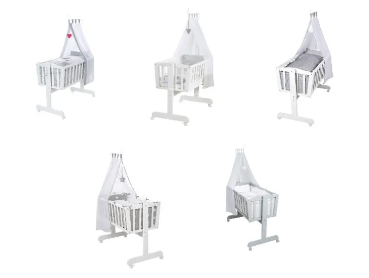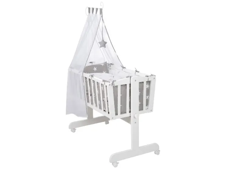 - Complete set bestaande uit een wieg, matras, kussen, kinderdeken, hemel, hemelstand en hoofdbeschermer