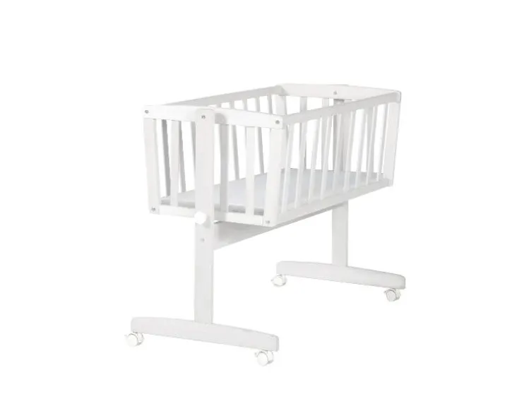 - De wieg kan je laten schommelen of vastzetten door middel van een slot