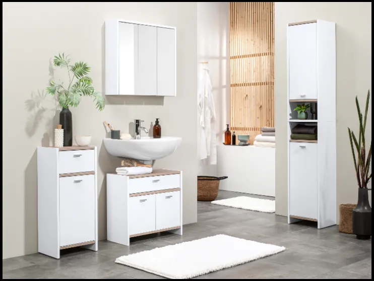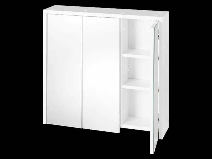 Het LIVARNO home badkamer spiegelkast in wit is een praktische en stijlvolle toevoeging aan je badkamer. Dankzij het moderne ontwerp past het goed in verschillende interieurstijlen. De spiegel biedt niet alleen een helder beeld, maar ook handige opbergruimte voor je dagelijkse verzorgingsproducten. De krasvaste melaminharscoating zorgt ervoor dat het oppervlak lang mooi blijft. Dit spiegelsysteem is een slimme keuze als je op zoek bent naar een combinatie van functionaliteit en een strakke uitstraling.