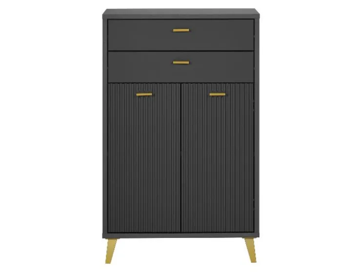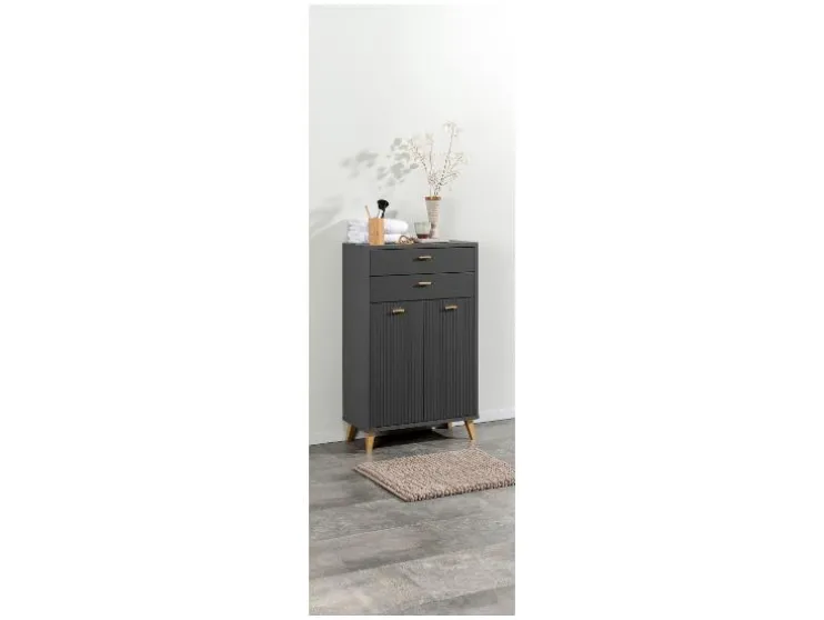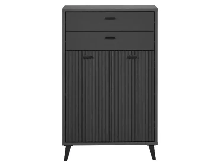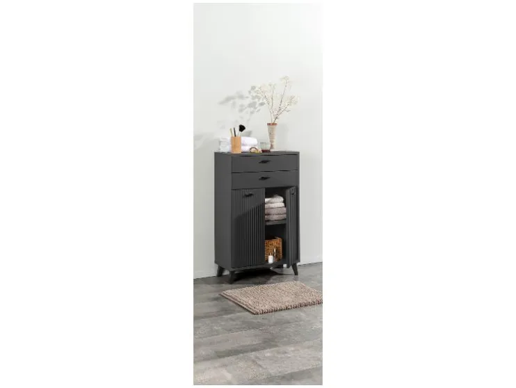 - Antracietkleurige uitvoering met 2 laden en 2 deuren met een gegolfde voorkant