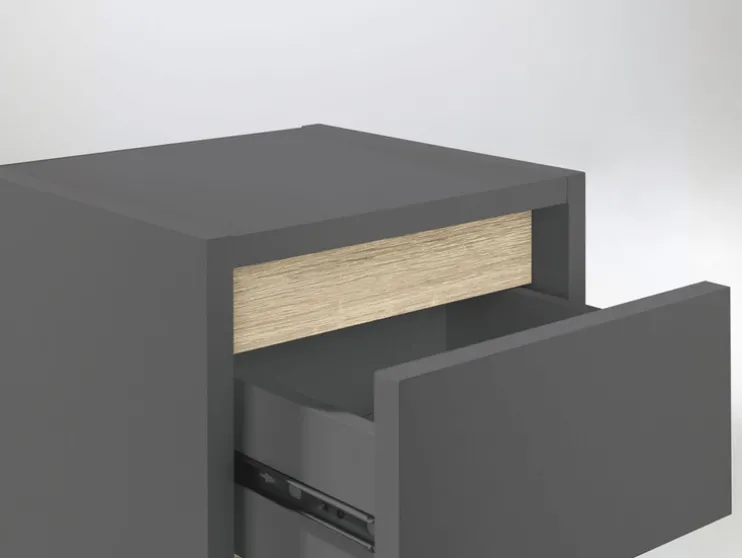- Tweekleurige verwisselbare panelen voor een individuele keuze: wit eiken imitatie / antraciet mint