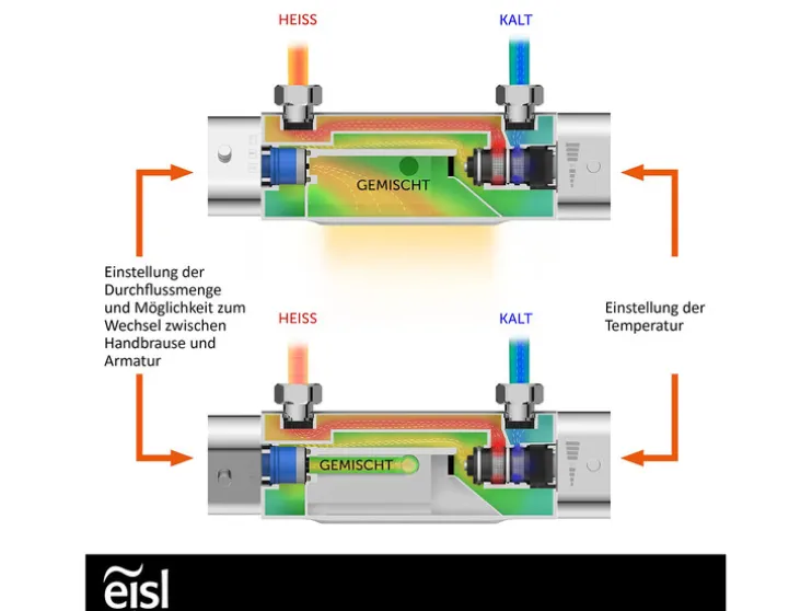 - De mengkraan met thermostatische regeling zorgt voor een gelijkmatig temperatuurverloop