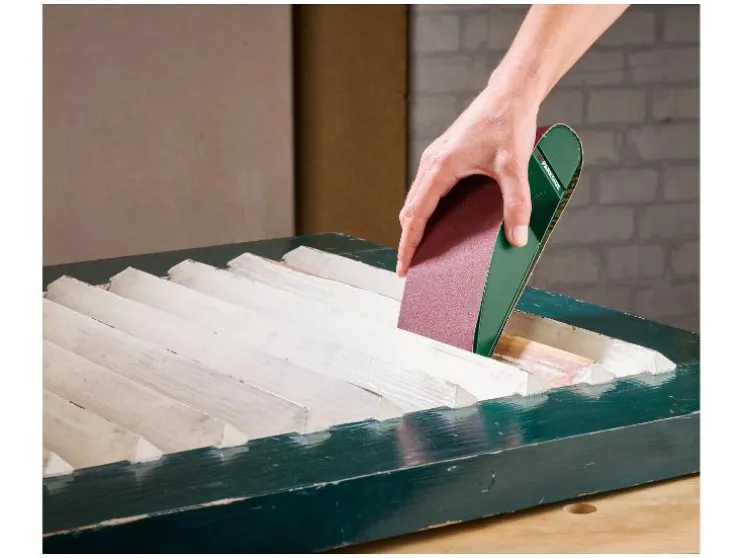 | Materiaal: | Bandschuurpapier: aluminiumoxide, textielweefsel; Handschuurmachine: kunststof |