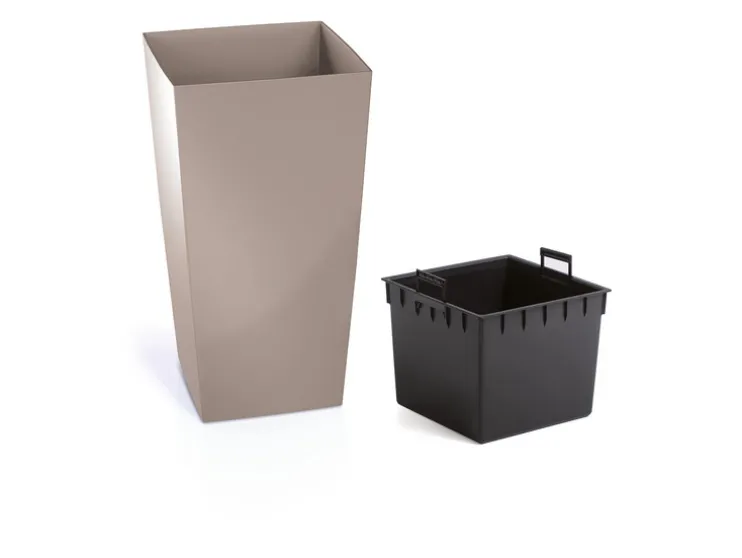 Elegante plantenbak die niet alleen in de tuin maar ook bij de ingang een mooi figuur slaat. De matte look valt meteen op en is een geweldige blikvanger. De bloempot is uitgerust met een inzetstuk zodat je niet de hele pot met aarde hoeft te vullen. De planteninzet kan heel gemakkelijk worden verwijderd en dus geplant.