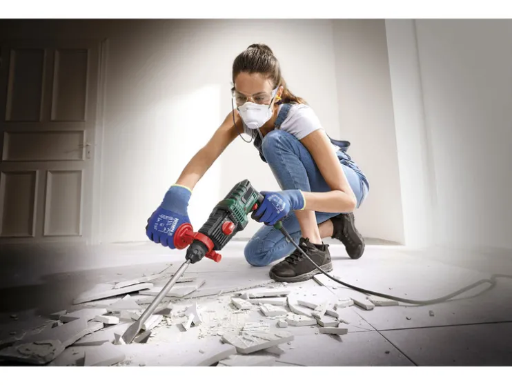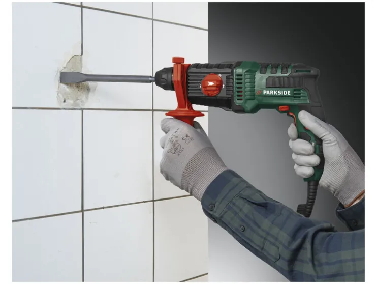 - Deze boor- en beitelhamer is ideaal voor het krachtig bewerken van onder andere steen, tegels, metaal, beton en hout