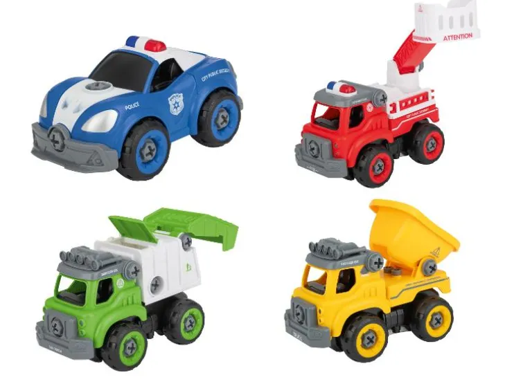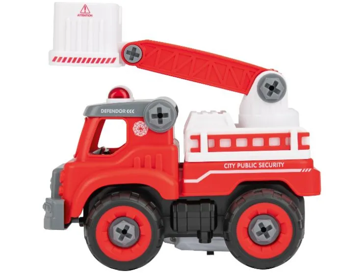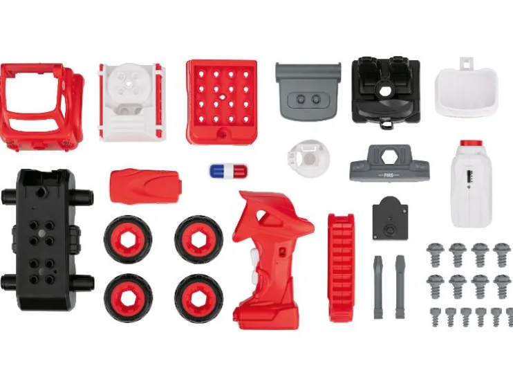 | Leveringsomvang | Kiepwagen: 1x kiepwagen 27-delig, 1x accuschroevendraaier/motor, 1x afstandsbediening/accuschroevendraaierhandgreep, 1x moersleutelhandgreep, 2x opzetstuk voor accuschroevendraaier/moersleutel Brandweer: 1x brandweerwagen 33-delig, 1x accuschroevendraaier/motor, 1x afstandsbediening/accuschroevendraaierhandgreep, 1x moersleutelhandgreep, 2x opzetstuk voor accuschroevendraaier/moersleutel Politie: 1x politievoertuig 22-delig, 1x accuschroevendraaier/motor, 1x afstandsbediening/accuschroevendraaierhandgreep, 1x moersleutelhandgreep, 2x opzetstuk voor accuschroevendraaier/moersleutel Vuilniswagen: 1x vuilniswagen 27-delig, 1x accuschroevendraaier/motor, 1x afstandsbediening/accuschroevendraaierhandgreep, 1x moersleutelhandgreep, 2x opzetstuk voor accuschroevendraaier/moersleutel |