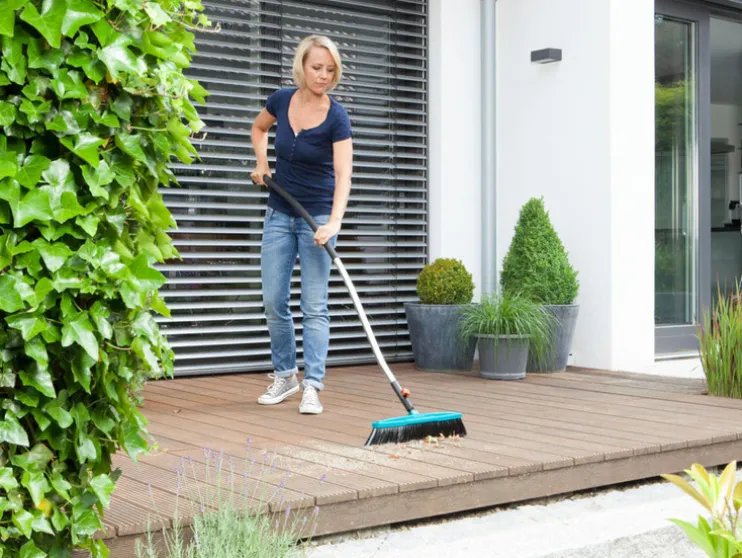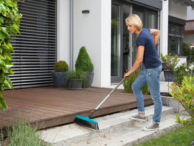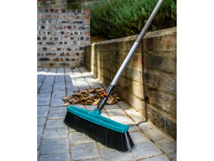 Met de GARDENA combisysteem straatbezem ben je ideaal uitgerust voor jouw paden rond het huis. Dankzij een werkbreedte van 45 cm en een robuuste behuizing van hoogwaardig kunststof kun je de straatbezem op vele manieren gebruiken. Met de hoogwaardige en flexibele polypropyleen borstelharen krijg je een perfect reinigingsresultaat. Dankzij een mix van harde en zachte borstelharen kan je zelfs het fijnste vuil, zoals zand en stof, optimaal verwijderen. Vertrapt vuil en vochtige bladeren kunt zonder grote inspanning met de geïntegreerde schraaprand verwijderen.