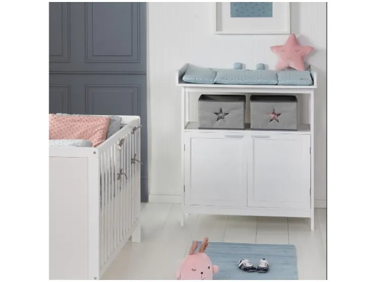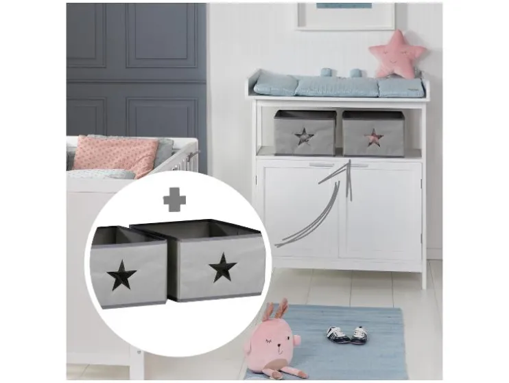 | Leveringsomvang: | Commode incl. aankleedopzetstuk, 2 canvas boxen, wandbevestiging |