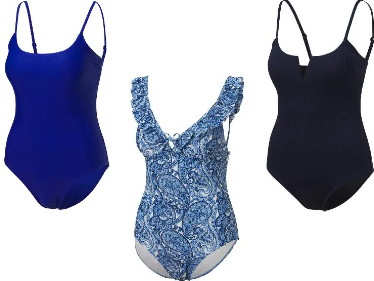 | Detail: | blauw: kleine plooitjes op borsthoogte; blauw/wit: met speelse volants en strikbandje bij de halslijn; marineblauw: in trendy piqué-look |