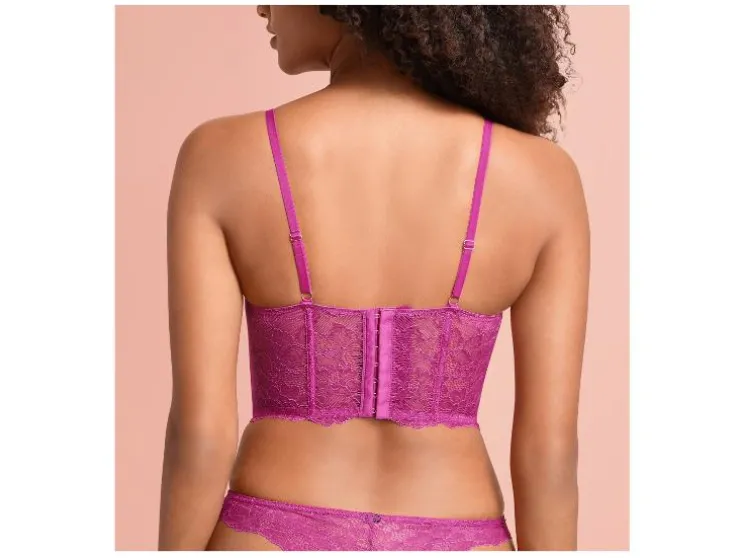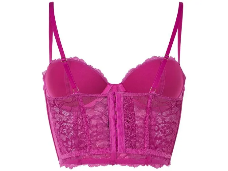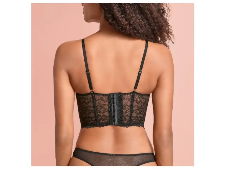 | Detail: | Haak-en-oog sluiting achter; roze, zwart: met kant; wit: satijnen look |
