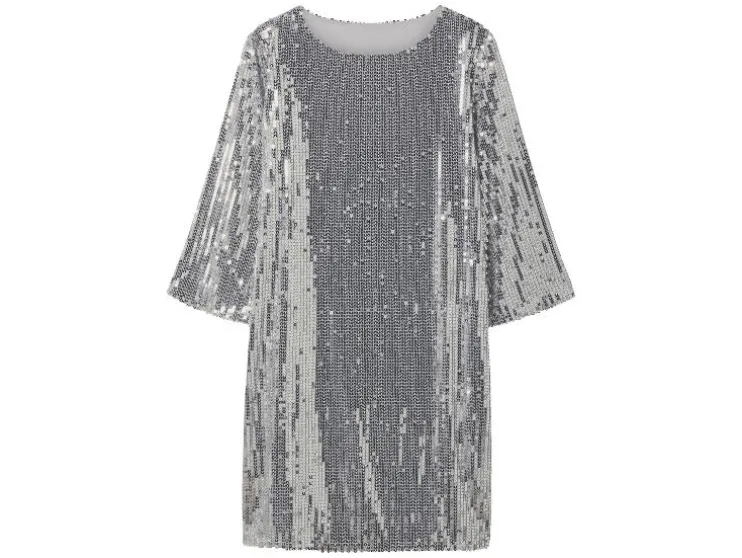 - Deze jurk is versierd met pailletten, ideaal voor een feestje of een glamoureuze look!