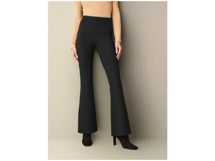 - Zwart: wijduitlopend been met hoge taille