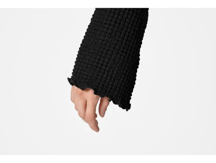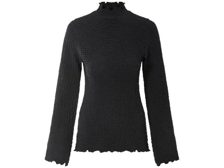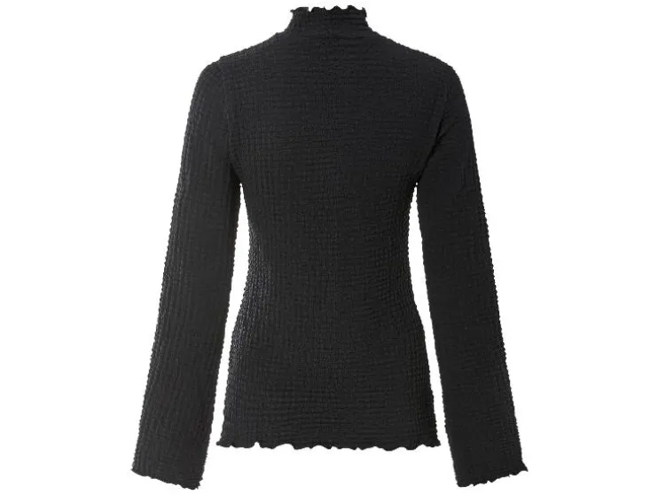 - Zwart: Golvende zoom aan kraag, mouwen en zoom