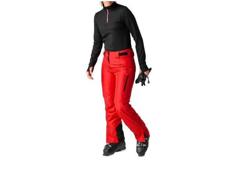 - De broekspijpen zijn voorzien van sneeuwvangers en antisliprubber voor een goede aansluiting op skischoenen