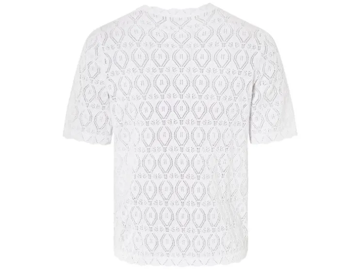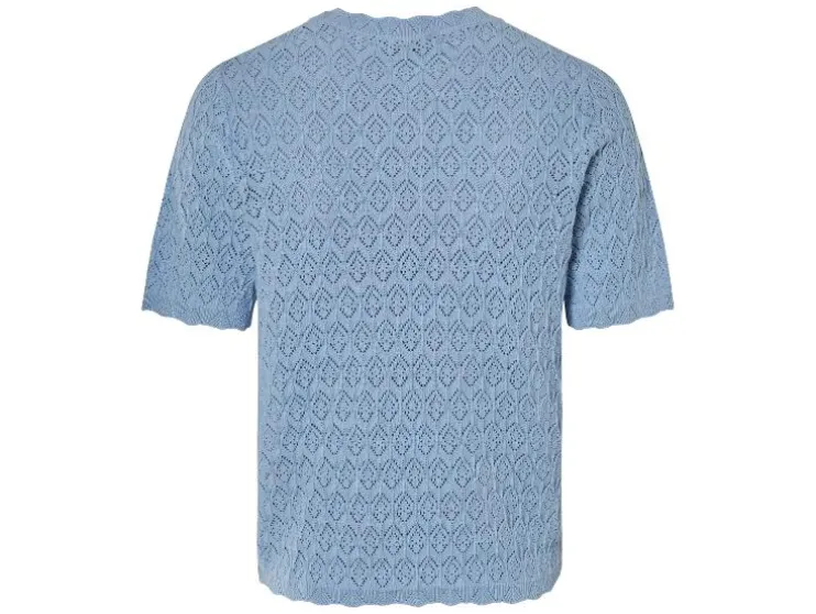 | Detail: | Golfrand aan hals, mouwen en zoom, licht transparant, driekwartmouwen |