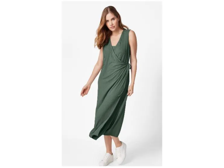 | Detail: | in modieuze ribkwaliteit, wikkel look met verborgen strikband aan de zijkant |
