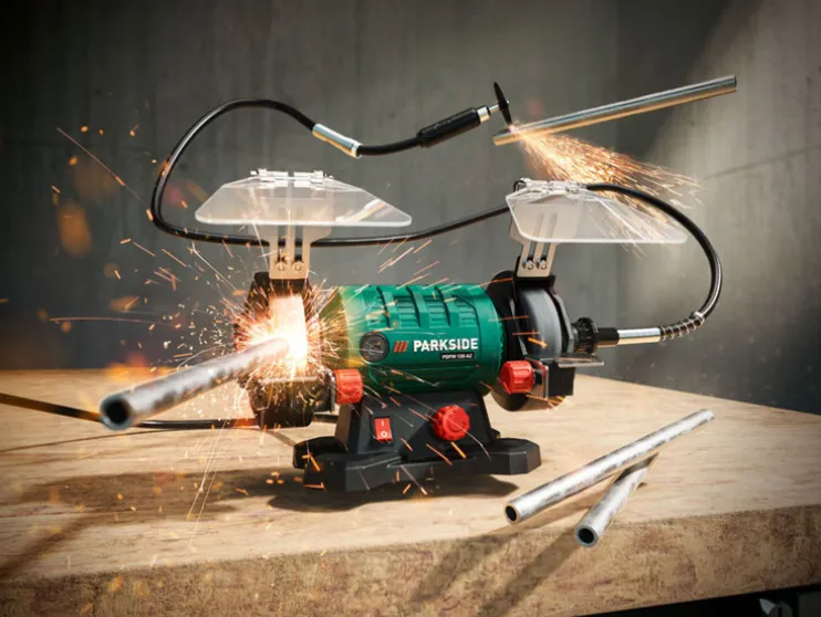 - Deze compacte dubbele slijpmachine is ideaal voor schuren, doorslijpen, polijsten en reinigen van staal, NE-metaal, hout, kunststof en lak