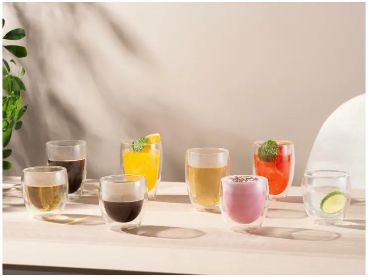 Geef je tafel een stijlvolle uitstraling met deze set dubbelwandige glazen. Perfect voor warme en koude dranken, zonder condens of verbrande vingers.