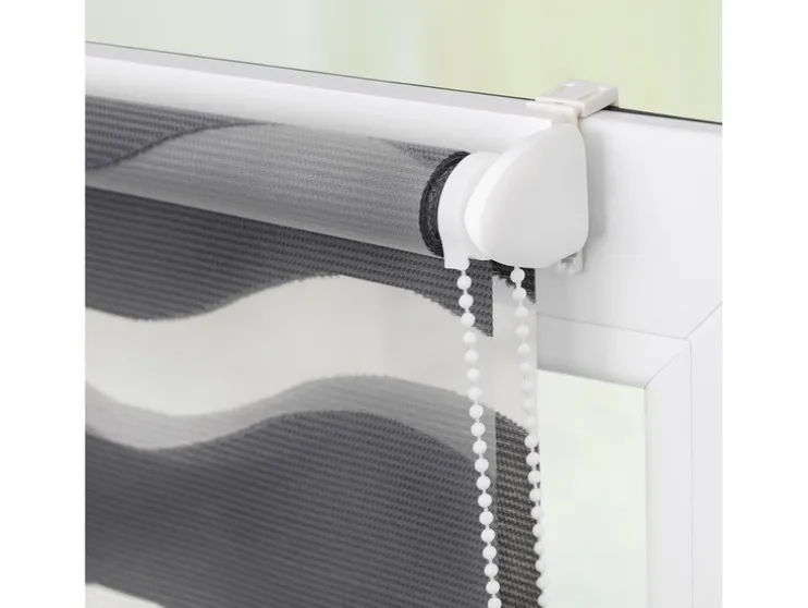 Dubbel rolgordijn, montagehandleiding, klembeugel en toebehoren voor wand- en plafondmontage