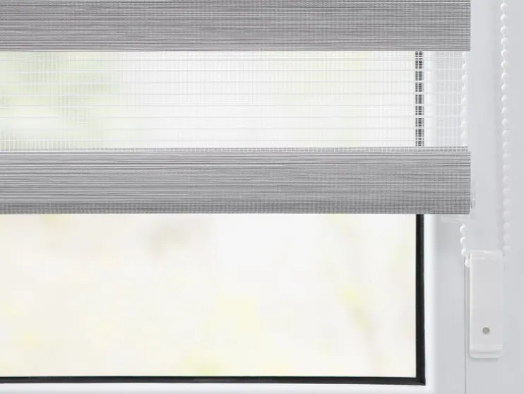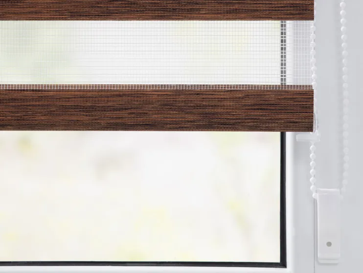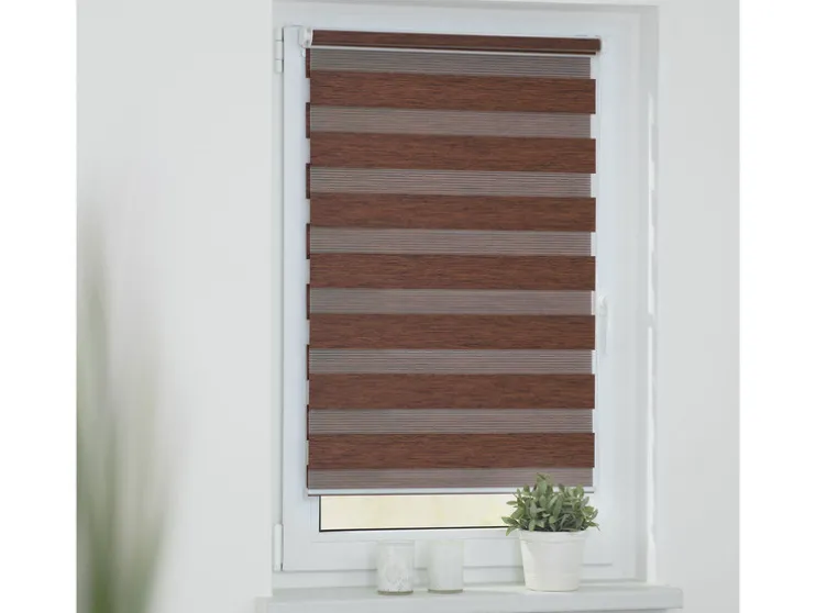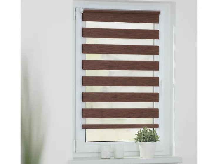 Een revolutionair zonweringssysteem voor licht- en privacybescherming,, maar ook moderne raamdecoratie biedt je dit hoogwaardig verwerkt duo rolgordijn. Met de twee parallelle stoffen panelen met afwisselend transparante en ondoorzichtige strepen kun je het invallende licht geheel individueel regelen. Hierdoor ontstaan prachtige lichtspelingen. Met behulp van de trekketting aan de zijkant kan de positie van de stoffen panelen uiterst nauwkeurig worden aangepast, zodat ofwel meer daglicht door de transparante stroken dringt, ofwel de ondoorzichtige stroken op betrouwbare wijze bescherming bieden tegen nieuwsgierige blikken. Deze functie kan op elke hoogte worden gebruikt, omdat de stof net als bij een conventioneel zijdelings trekkend rolgordijn volledig op en neer kan worden gerold. De Duo Rollo verfraait met zijn aangename houtlook & de natuurlijke kleurstelling in de „Natural Living“ look de meest uiteenlopende ruimtes.