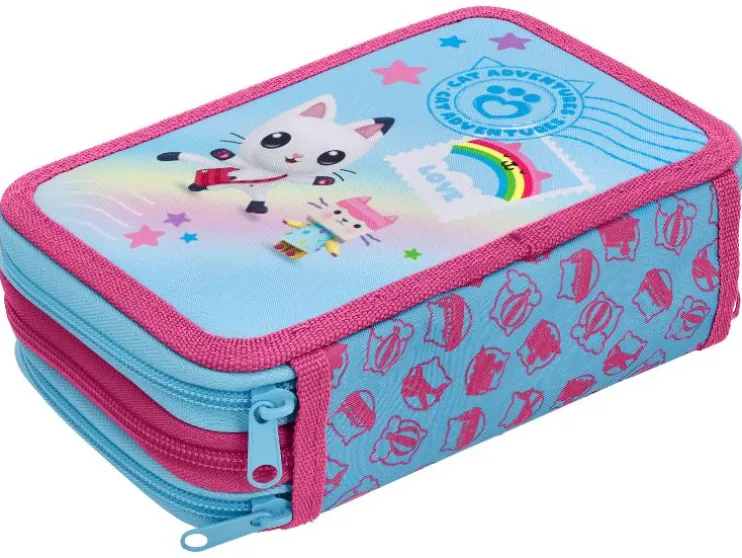 Met dit etui van Gabby’s Dollhouse zijn creatieve kids goed uitgerust! Het paarse etui toont aan de voorkant Gabby met haar gitaar en aan de achterkant de speelse tekst „A-MEOW-Zing“ – een echte blikvanger voor fans van de populaire serie. 3 Aparte vakken met ritsen bieden veel ruimte en orde voor alles wat op school of tijdens het knutselen nodig is. Het etui is compleet gevuld: met 18 kleurpotloden, 18 stiften, 2 potloden, 1 balpen, 1 schaar, 1 puntenslijper, 1 gum en een 15 cm liniaal. Zo staat er niets meer in de weg voor het volgende creatieve avontuur!