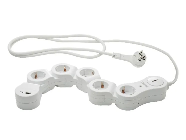 - Flexibele stekkerdoos – positionering van individuele stopcontacten in verschillende richtingen mogelijk