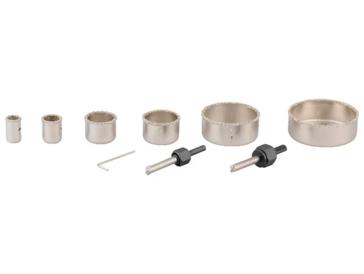 - 9-delige set: 6 gatenzagen, 2 centerboortjes, 1 tweewegadapter