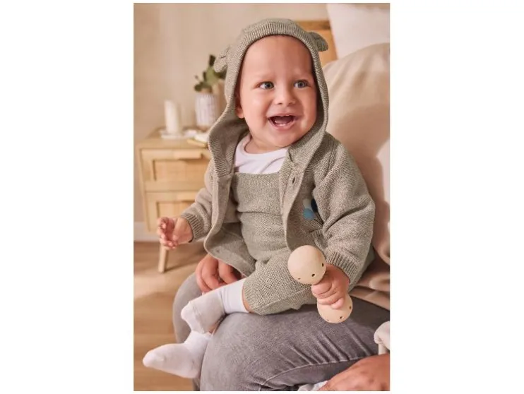 Ontdek de knuffelige babytrui van lupilu, die je kleintje warm houdt en er super schattig uitziet! Gemaakt van 100% biologisch katoen, is hij bijzonder zacht voor de gevoelige babyhuid en zorgt voor een aangenaam draagcomfort. De schattige details zoals de capuchon met aangezette oortjes en de knopen in houtlook maken deze trui tot een echte blikvanger. Perfect voor gezellige uurtjes thuis of kleine avonturen buiten.