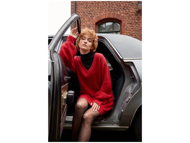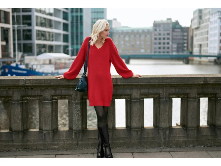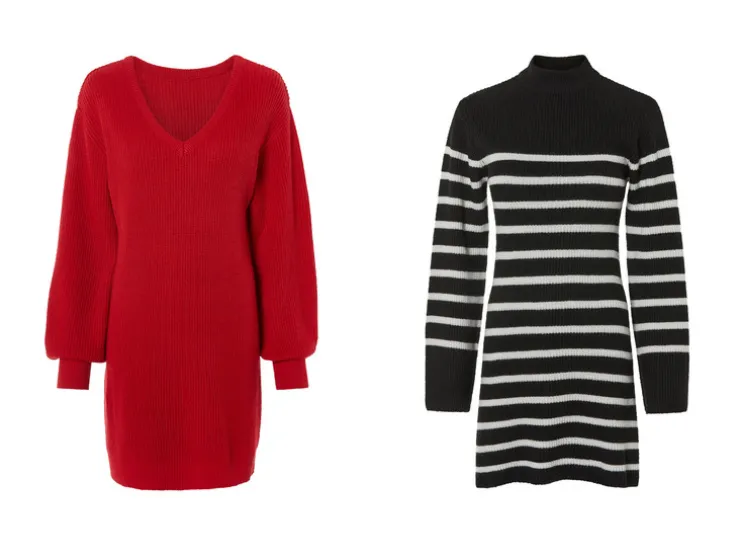 | Detail: | rood: overgeslagen schouders / brede ribboorden aan mouw- en zoom afwerking zwart: trompetmouwen |