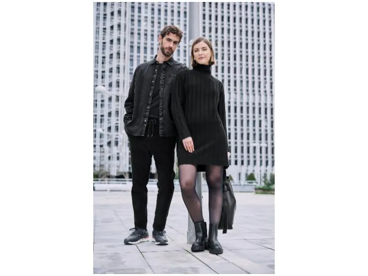- Zwart, wit: in modieus gebreide structuur met rolkraag