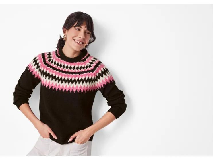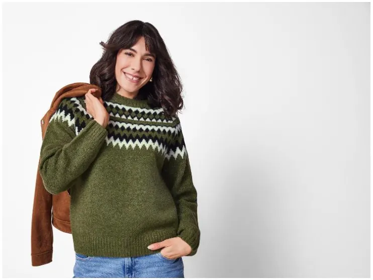 - Deze grofgebreide trui voor dames is gemaakt met wol