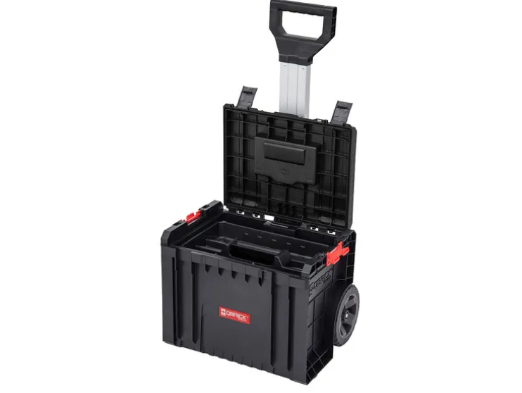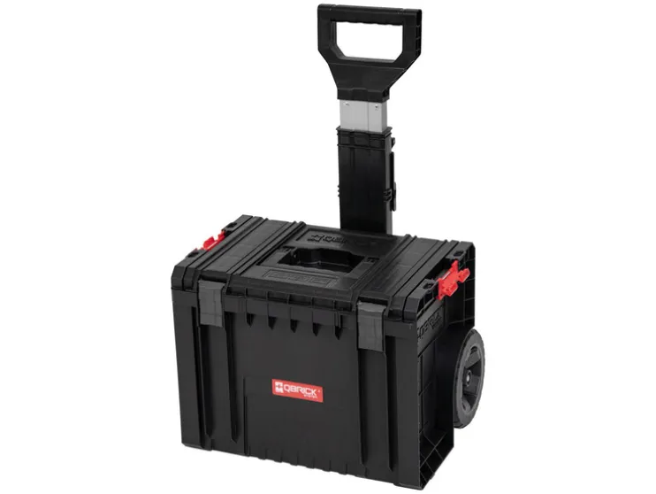 De Qbrick System PRO Cart is een mobiele koffer op wielen met een telescopische greep van aluminium, die ook de basis is voor de nieuwe multimodulaire en meest compacte PRO-lijn. De box heeft grote rubberen wielen, die op een metalen as zijn gemonteerd.Het heeft stevige sluitingen en zijaansluitingen van sterk polyamide.