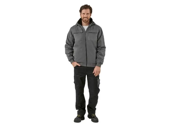 | Detail: | met veel praktische zakken voor gereedschap, mobiele telefoon, rolmeter etc., gevoerde capuchon met elastisch trekkoord en koordstopper, doorlopende rits |
