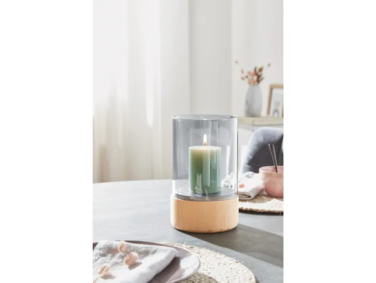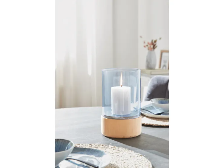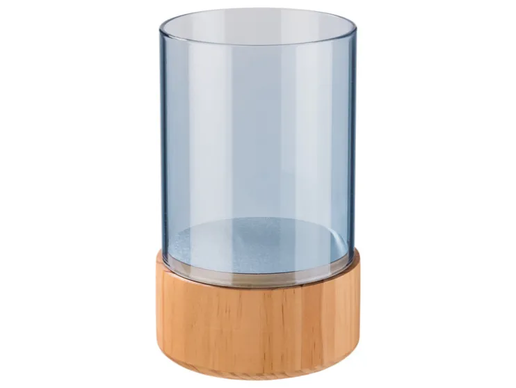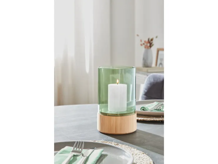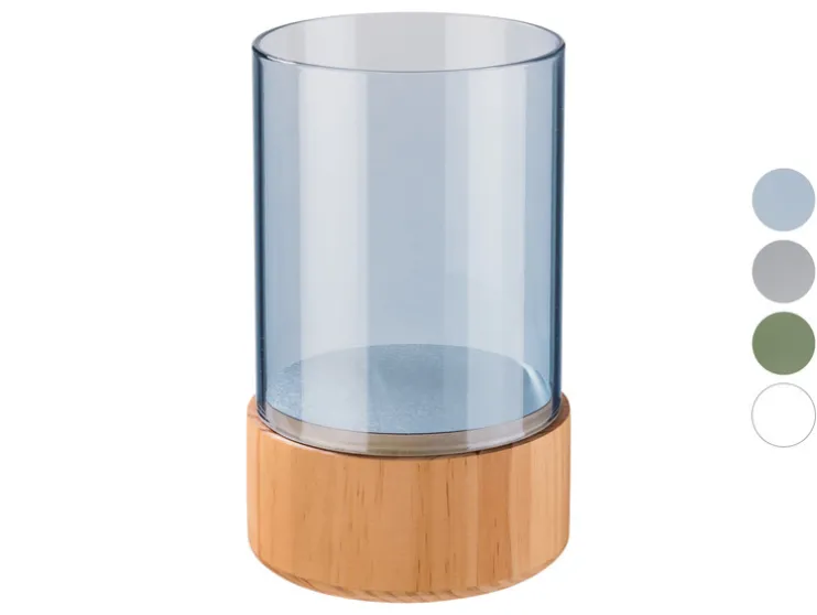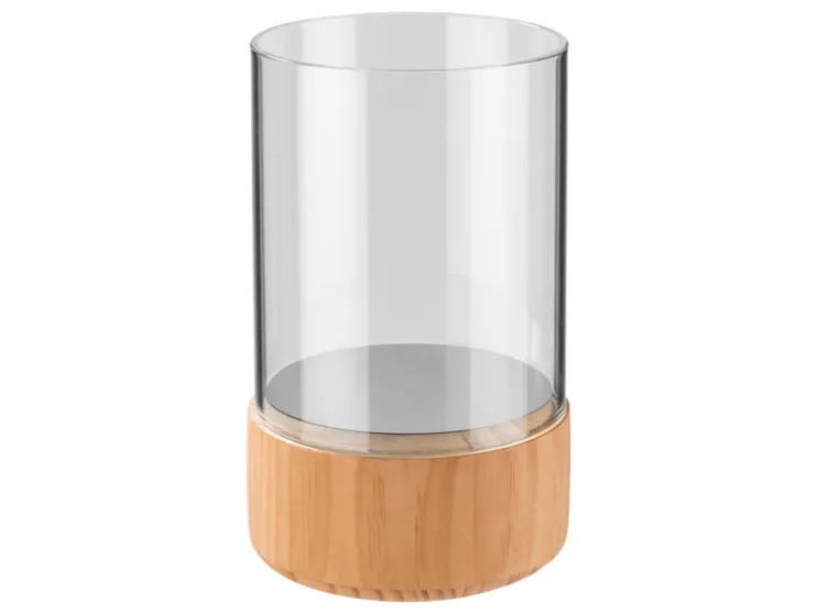 LIVARNO home Glazen windlicht met houten voet