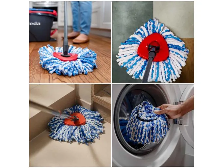 - Dweilkop met microvezels en blauwe krachtvezels voor de grondige verwijdering van kruimels en vuildeeltjes