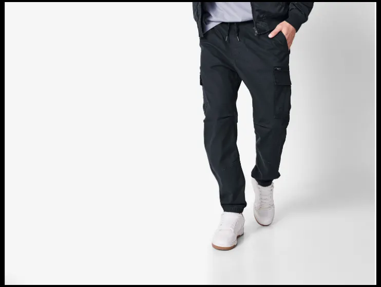 | Detail: | Cargozakken met drukknoop en ritsvak aan de zijkant |