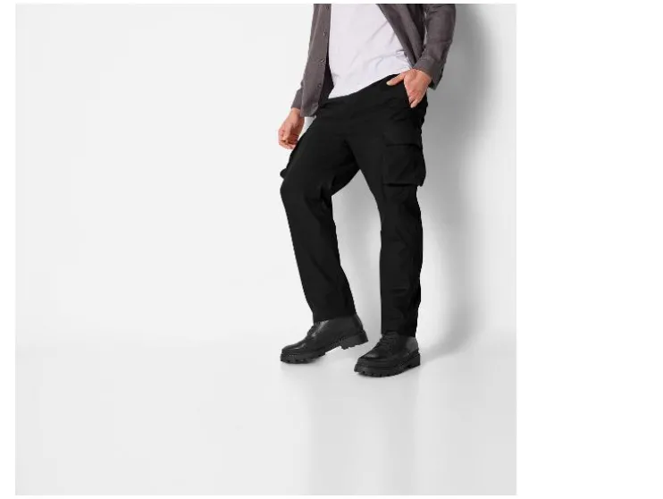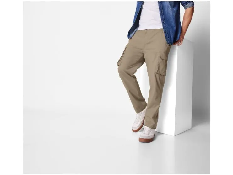 | Detail: | hoog katoenaandeel licht en comfortabel elastische tailleband met binnenkoord zijzakken, achterzakken en cargozakken met klep en drukknoopsluiting hoogwaardige, gerecyclede YKK-merkritssluiting |