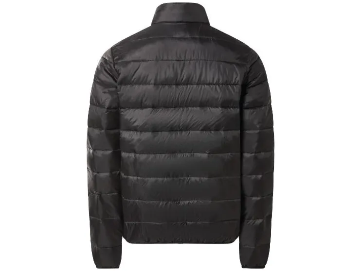 - De jas is windafstotend en heeft een opstaande kraag en doorlopende ritssluiting met kinbescherming