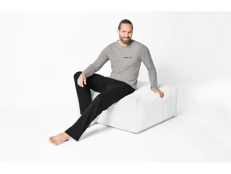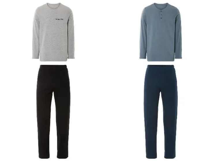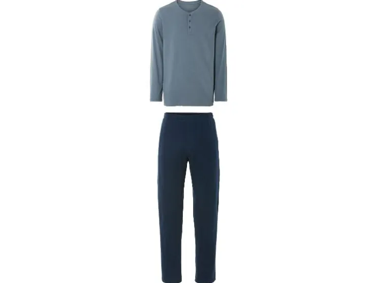 | Materiaal: | blauw: Shirt: 100 % katoen; broek: 60 % katoen, 40 % polyester (gerecycled) grijs: Shirt: 90 % katoen, 10 % viscose (viscose van Lenzing); broek: 60 % katoen, 40 % polyester (gerecycled) |